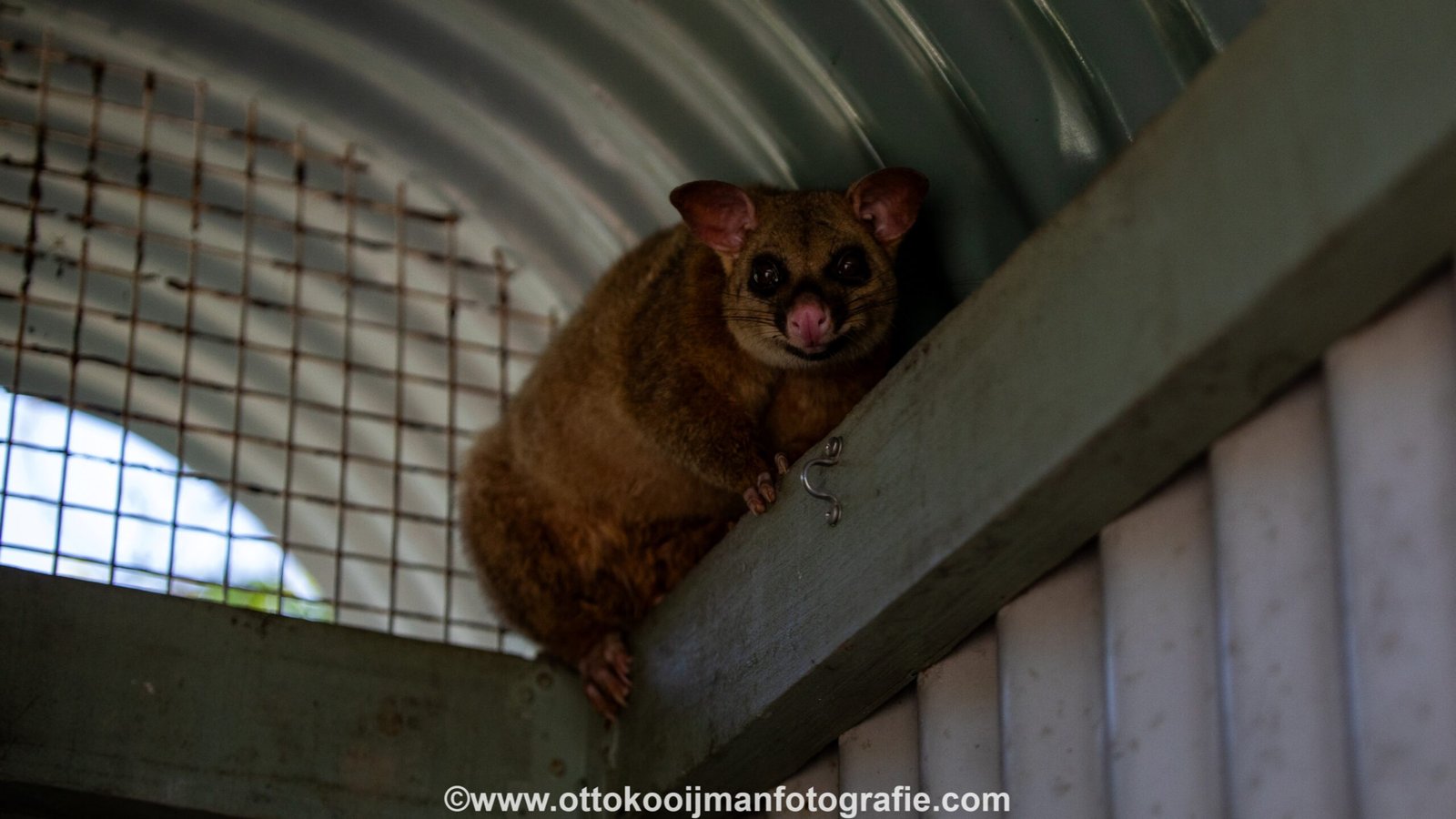 Na een rit van een uurtje komen we aan bij een soort kamp. In het outdoor toilet maken we kennis met de twee possums die daar “wonen” en krijgen we een uitgebreide briefing van onze gids Stu.