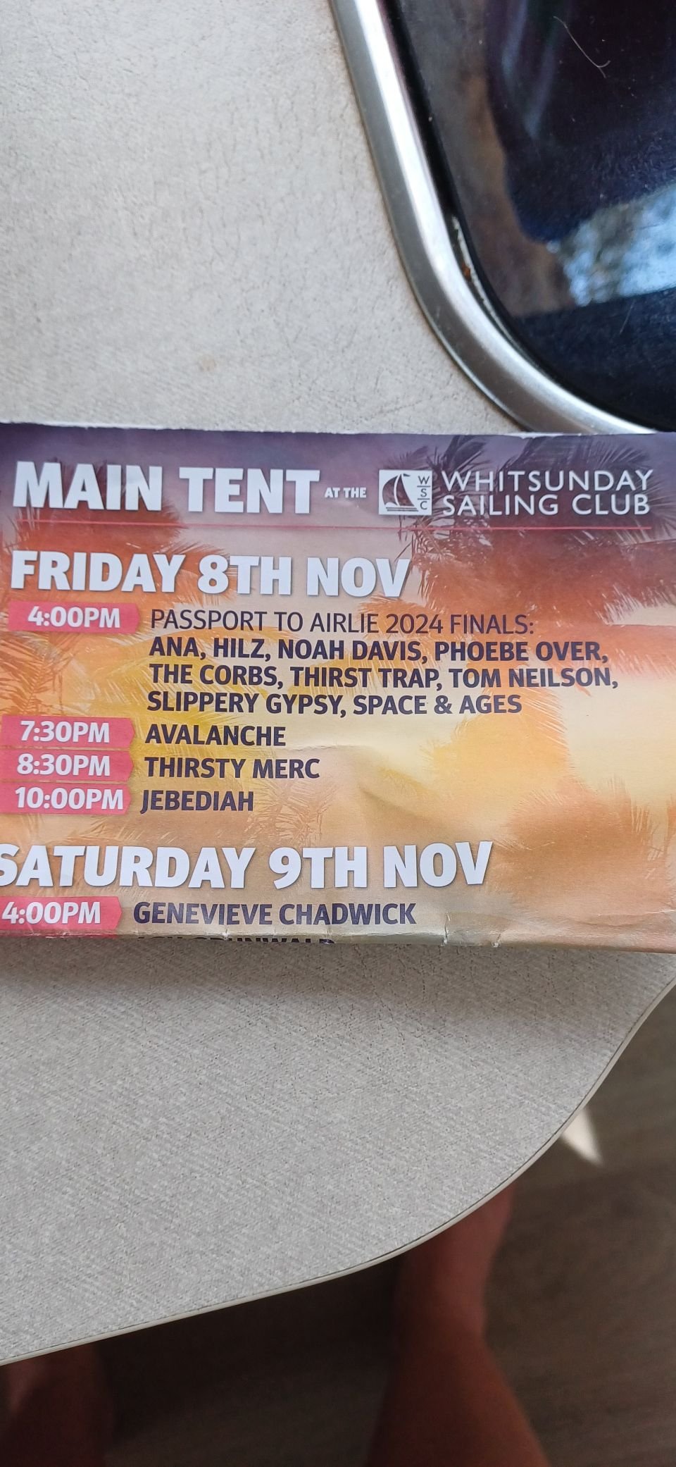 Twee weken geleden zagen we namelijk in de omgeving van Townsville toevallig een reclamebord langs de snelweg over het Airlie Beach Festival of Music en besloten we op dat moment kaartjes te kopen en ons verblijf in Airlie Beach te verlengen.