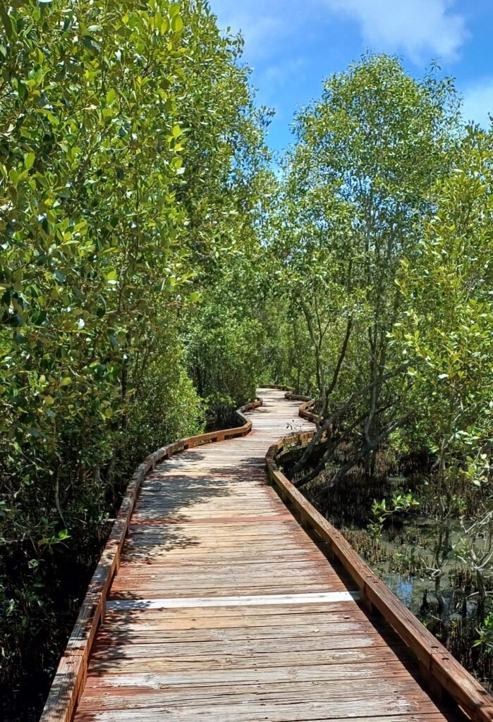 Vanuit Ivory Rock en rijden we na het ontbijt naar Gold Coast. We willen hierheen om te wandelen in de Conservation Area. Dit gebied staat erom bekent dat de kans om kangoeroes én koala’s t e zien erg groot is. Aangezien je nooit genoeg kangoeroes of koala’s kunt zien in je leven, beginnen we met een mangrove walk, maar helaas zien we hier geen wildlife.