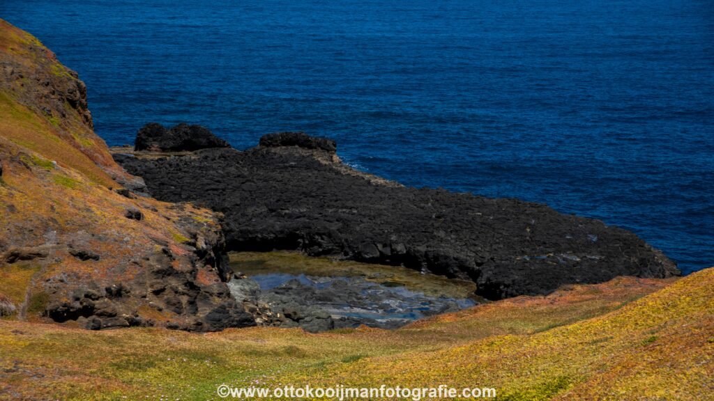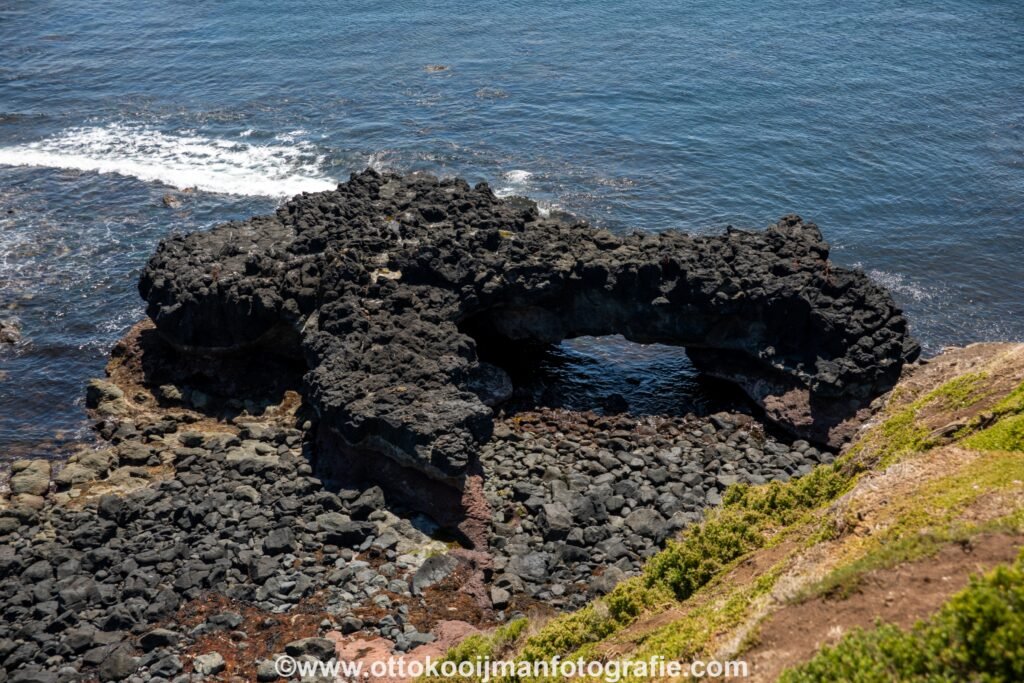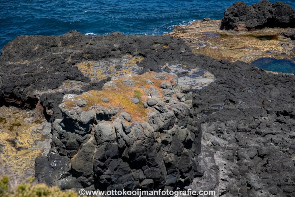 Een heel bijzonder stukje natuur, met zwarte rotsen begroeid met groen en oranje plantjes en heel veel vogels. Hier zien wij ook voor het eerst Australische ganzen. Mooie grote dieren. Er is hier een bezoekerscentrum met toiletten en een restaurant.