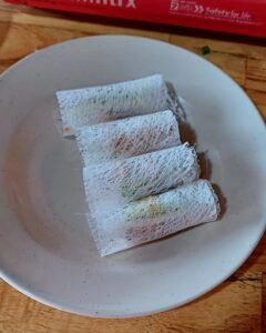 We maakten vier gerechten; Hoi An spring-rolls, Papajasalade met kip, Vietnamese pannenkoek in rijstpapier en een stoofgerecht met vis en witte rijst.