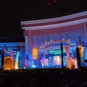 ’s Avonds gingen we op aanrader van een hostel medewerkster naar een groot park. Op het plein was een groot podium gebouwd en je kon zelf een plastic stoeltje pakken en een plekje op het plein uitzoeken.